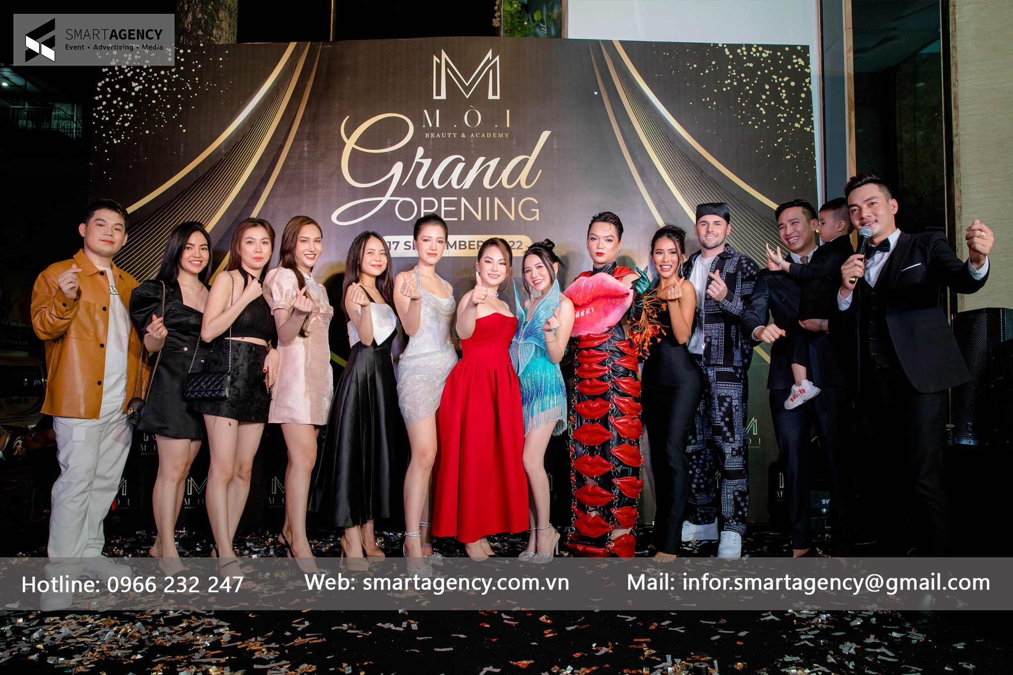Với phương châm đặt chất lượng và trải nghiệm của khách hàng lên hàng đầu, Smart Agency cam kết mang đến cho bạn dịch vụ tổ chức khai trương chuyên nghiệp, sáng tạo và hiệu quả nhất. Chúng tôi luôn lắng nghe và thấu hiểu nhu cầu của khách hàng, đồng hành cùng bạn trong từng bước của quá trình tổ chức sự kiện.